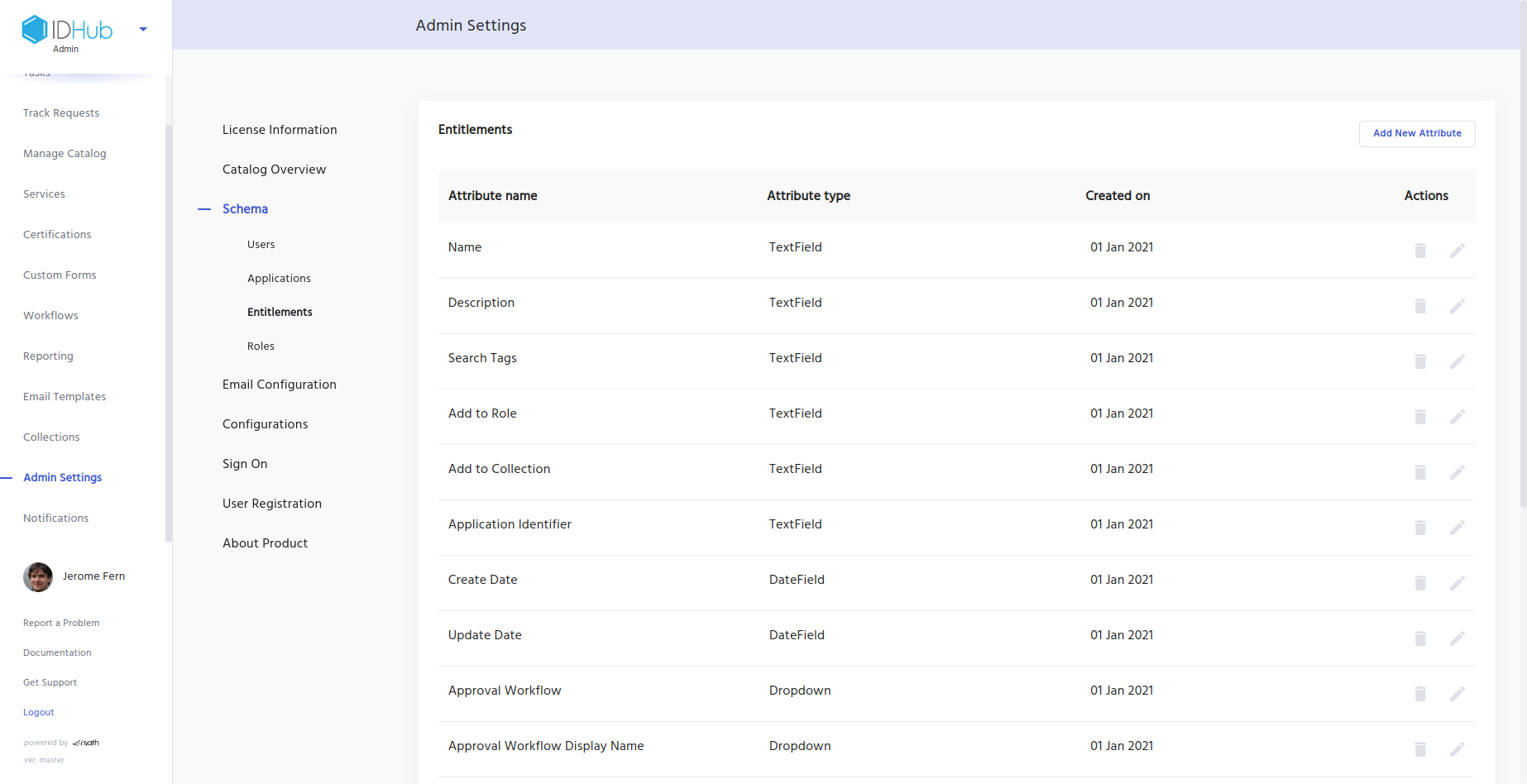 Login to your tenant as an admin. Then click on Admin settings. Click on Entitlements under schema, to edit the entitlement schema. You will see a page as shown in the screenshot below: