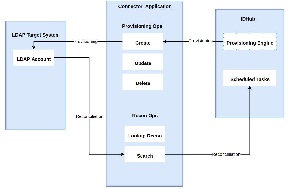 • During provisioning, the connector invokes the target system's Apache Directory SDK for provisioning tasks.