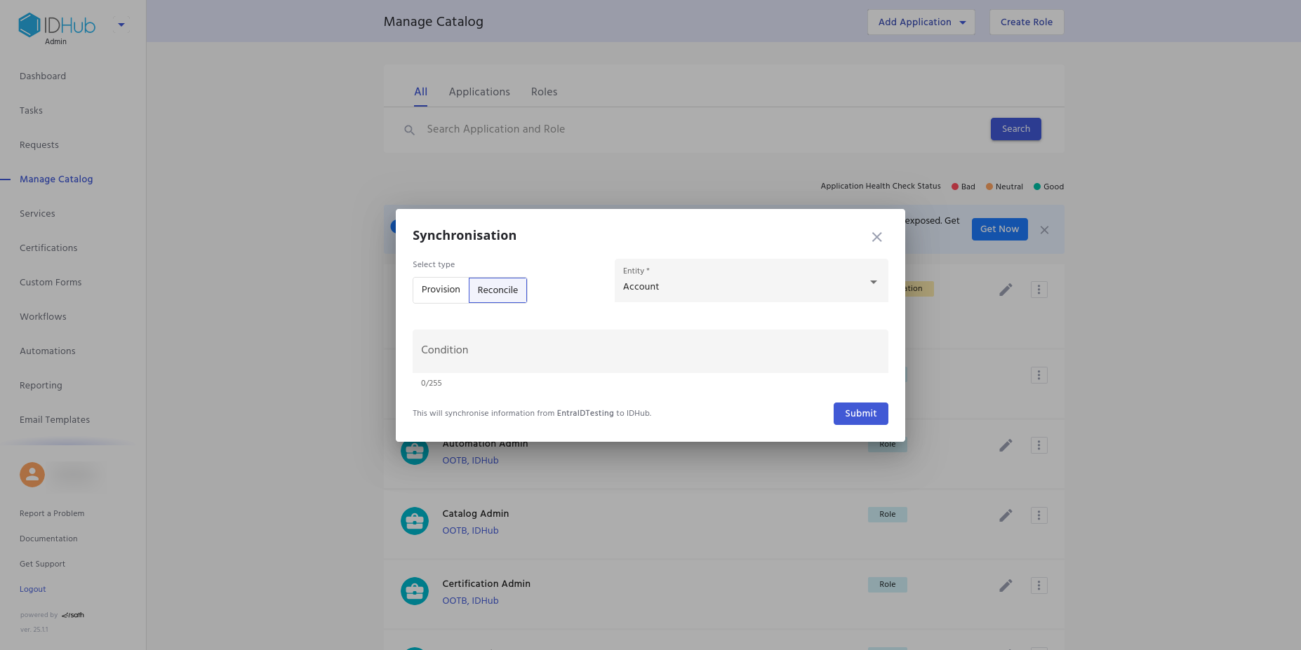 - This means that upon reconciliation of the application, the non-existent accounts and entitlements of target system would be immediately revoked/removed from IDHub. In other words, stale data (non-existent) accounts / entitlements in the target system would be removed instantly when you execute the reconciliation of the application in IDHub.